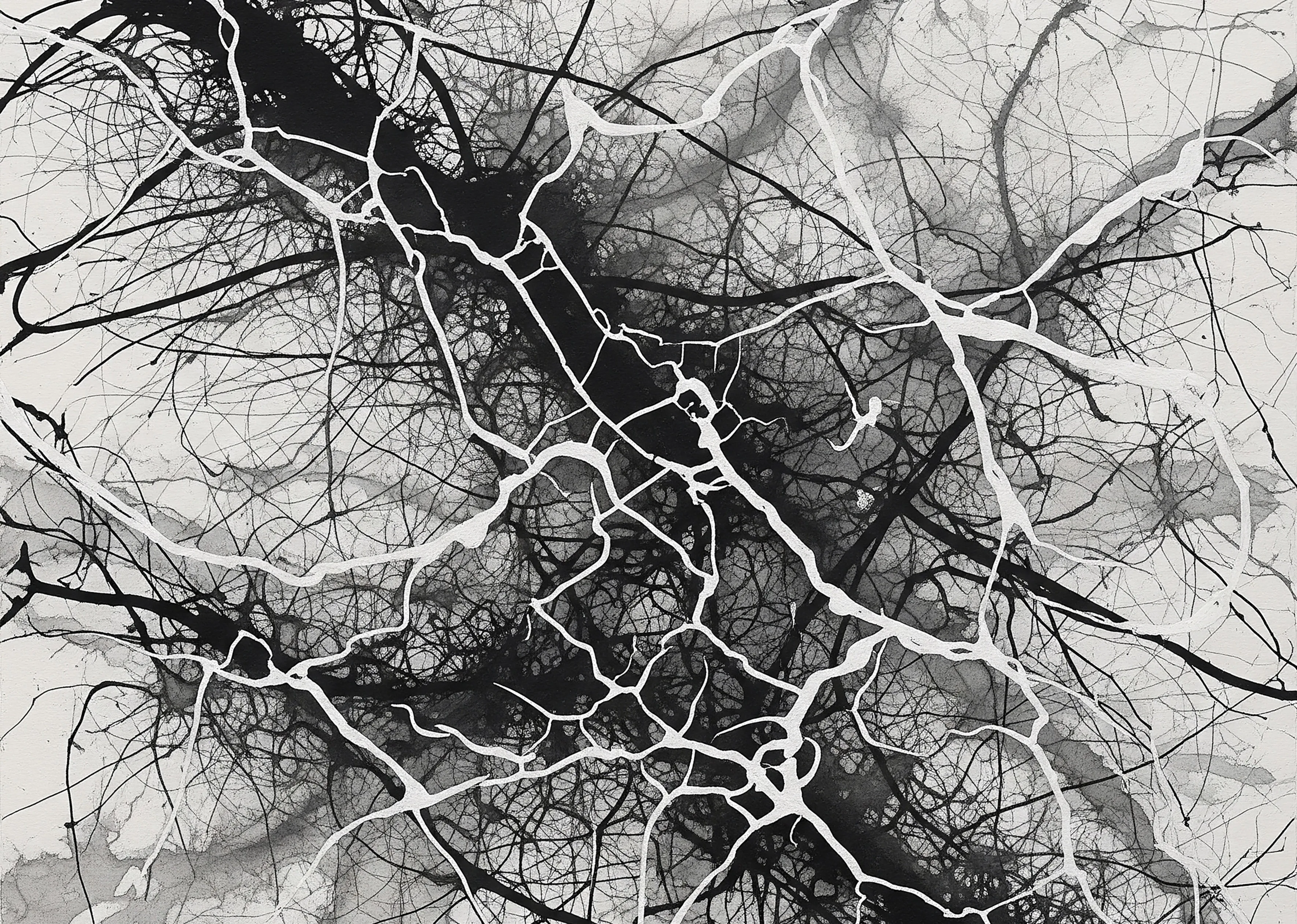 Using Google Gemini. The keywords provided were “abstract painting,” “cracks,” “ink,” “nervous lines,” and “trembling.”